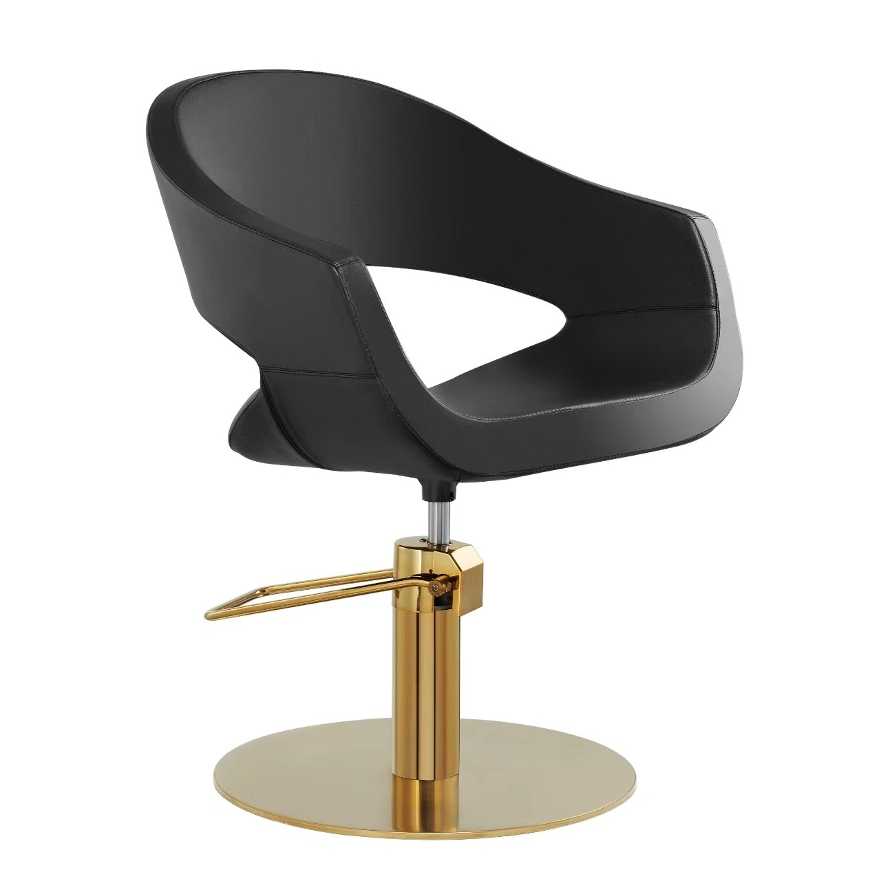 A base ultrafina em metal cromado dourado acrescenta um toque de luxo ao ambiente. Além da estética refinada, oferece estabilidade e liberdade de movimento ao profissional, tornando o atendimento mais prático e confortável.